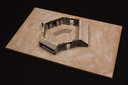 Die Aufgabe bestand zuerst darin, eine Wand zu entwerfen, welche Licht durchlässt, aber keinen Durchblick ermöglicht. Des Weiteren soll nun die Wand in den eigentlichen Entwurf, einer Umkleidekabine, einfliessen. Durch die gewählte Topographie ergab sich die Form der Umkleidekabine mit drei Eingängen und diese fügt sich somit perfekt in die Situation ein.